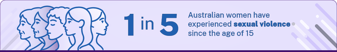 In 2021-22 an estimated 14% (2.8 million) of people in Australia aged 18 years and over had experienced sexual violence since the age of 15 (ABS Personal Safety Survey 2021-22). A higher proportion of women had experienced sexual violence compared with men. It is estimated that over 1 in 5 women (22%) and 1 in 16 men (6%) in Australia have experienced sexual violence since the age of 15.